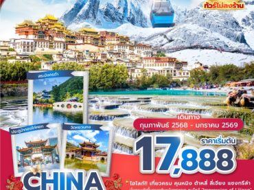 *ปีใหม่**บินตรงเชียงใหม่* ทัวร์จีน (CHINA) คุนหมิง ต้าหลี่ ลี่เจียง ภูเขาหิมะมังกรหยก 5 วัน 4 คืน *ไม่ลงร้านช้อป* บินกับ Ruili Airlines (DR)