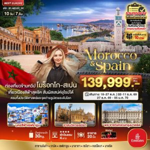 ทัวร์ โมรอคโค + สเปน (Morocco + Spain): 10 วัน 7 คืน บินกับ Emirates Airlines (EK) Code: #IB06-ESP+MAR-(BT-MEU01_EK)-18Oct2026-A260412 139,999 บาท ช่วงเวลาเดินทาง: 18-27 ต.ค. 2569 PDF รายละเอียด 2026-04-12