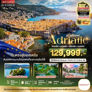 *บินตรง* ทัวร์ โครเอเชีย + ออสเตรีย + สโลวีเนีย + บอสเนีย & เฮอร์เซโกวีนา: 10 วัน 7 คืน บินกับ Austrian Airlines (OS) Code: #IB06-HRV+AUT+SVN+BIHl-(BT-EUR222_OS)-05Oct2025-A260412 129,999 บาท ช่วงเวลาเดินทาง: เม.ย.- ต.ค. 2569 PDF รายละเอียด 2026-04-12