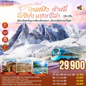 *บินตรง* ทัวร์จีน (CHINA) คุนหมิง ต้าหลี่ ลี่เจียง แชงกรีล่า นั่งรถไฟความเร็วสูง ชมวิวภูเขาหิมะมังกรหยก 6 วัน 5 คืน *ไม่ลงร้าน* บินกับ การบินไทย (TG) Code: #IG04-CHN-GO1KMG-TG009-13JAN2026-H251127 29,900 บาท ช่วงเวลาเดินทาง: 10-15 / 13-18 ม.ค. 69 PDF รายละเอียด 2025-11-27