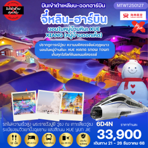 บินตรง* ทัวร์จีน (CHINA) ฮาร์บิน-ชมงานเทศกาลน้ำแข็ง Harbin Snow Festival ครั้งที่ 27 ชมปรากฎการณ์วู่ซง 6 วัน 4 คืน *ทัวร์ไม่เข้าร้าน* บินกับ HAINAN AIRLINES (HU) Code: #IM06-CHN-MTWT250127-21DEC2025-H251119-H 33,900 บาท ช่วงเวลาเดินทาง: 21-26 ธ.ค. 68 PDF รายละเอียด 2025-11-22