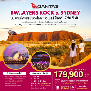 *สงกรานต์**บินตรง* ทัวร์ ออสเตรเลีย (Australia): ซิดนีย์ – เอเยอร์สร๊อค 7 วัน 5 คืน บินกับ Qantas Airways (QF) Code: #Code:IB04-AUS-(Sydney)-25JUN2026-G260204 179,900 บาท ช่วงเวลาเดินทาง: มี.ค. – มิ.ย. 69 PDF รายละเอียด 2026-02-04
