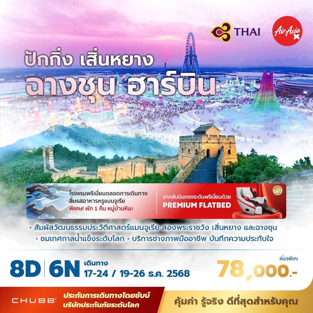 *ปีใหม่* *บินตรง* ทัวร์ จีน (China): ฮาร์บิน 7 วัน 5 คืน บินกับ Air Asia X (XJ)