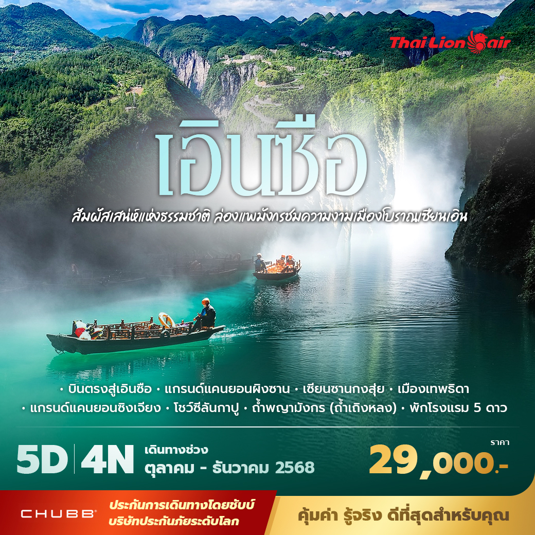 - วันที่ 4 ล่องเรือผิงซานแกรนด์แคนยอน – เมืองเทพธิดา – ชมวิวเมืองเทพธิดา – โชว์ซีลันกาปู