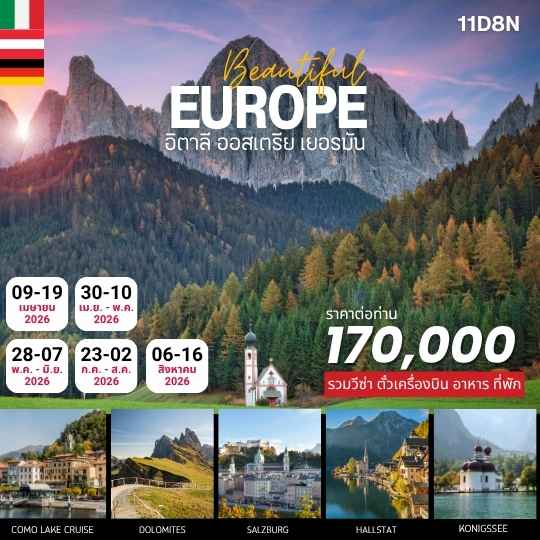 - วันที่ 4 กอร์ติน่า ดิเอ็มปาซโซ่ – Tre Cime di Lavaredo – ทะเลสาบมิซูริน่า – ทะเลสาบเบรียส – บริกเซ่น