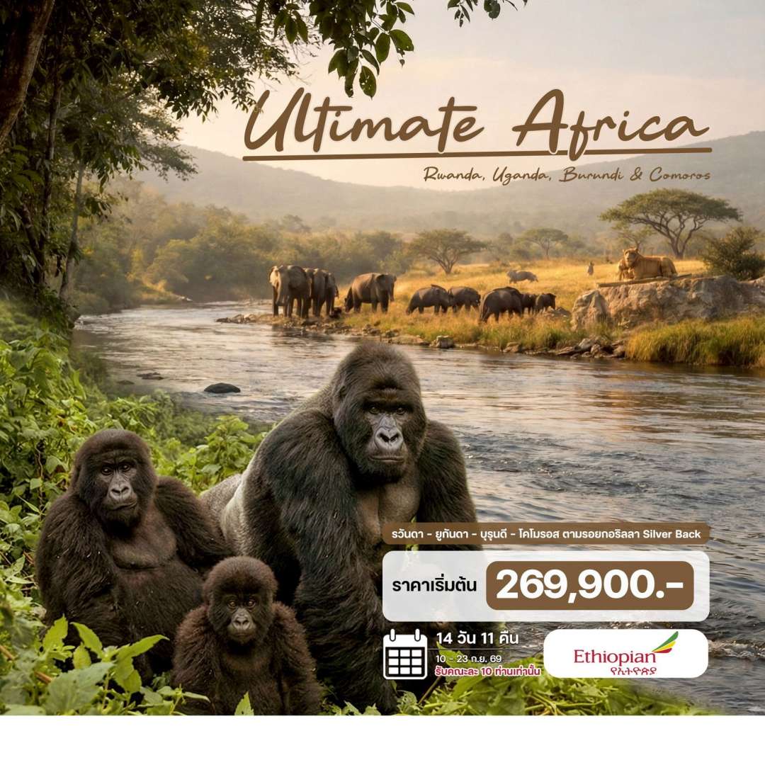 - วันที่ 3 รวันดา – เดินป่าชมลิงสีทอง – ยูกันดา