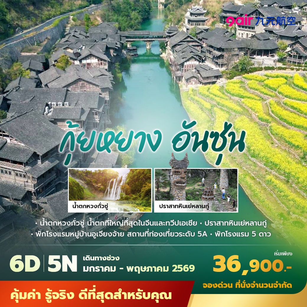 - วันที่ 6 เมืองกุ้ยหยาง – ส่งสนามบิน – กรุงเทพฯ(สุวรรณภูมิ)