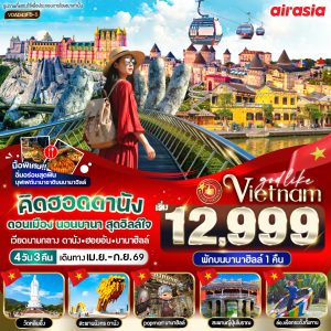 *บินตรง* ทัวร์เวียดนาม (VIETNAM-CENTRAL) คิดฮอดดานัง สุดฮิลล์ใจ 4 วัน 3 คืน บินกับ AIR ASIA (FD) Code: #IV06-VNM-(VDAD43FD-5)-10SEP2026-H260422 12,999 - 15,999 บาท ช่วงเวลาเดินทาง: พ.ค. – ก.ย. 69 PDF รายละเอียด 2026-04-22