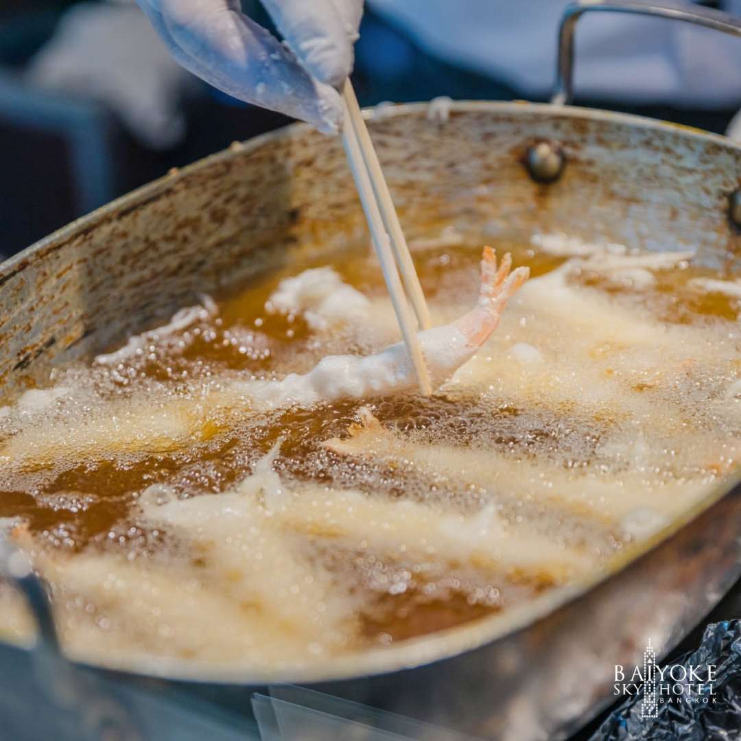 Grilled steak and seafood buffet, special recipes from Chef Baiyoke Sky, filled with unlimited steak and seafood. Don’t miss out on the most popular menus Wagyu beef and Kurobuta pork Nam Tok Shabu, Seasoned oysters, salmon sushi-shashimi along with seafood buckets, boiled seafood steamed eggs, seafood tom yum, fried sea bass with lemongrass salad sauce, fried sea bass with mango salad sauce, pizza, pasta, seafood fried rice Seafood Curry Powder Baked shrimp with glass noodles and etc.