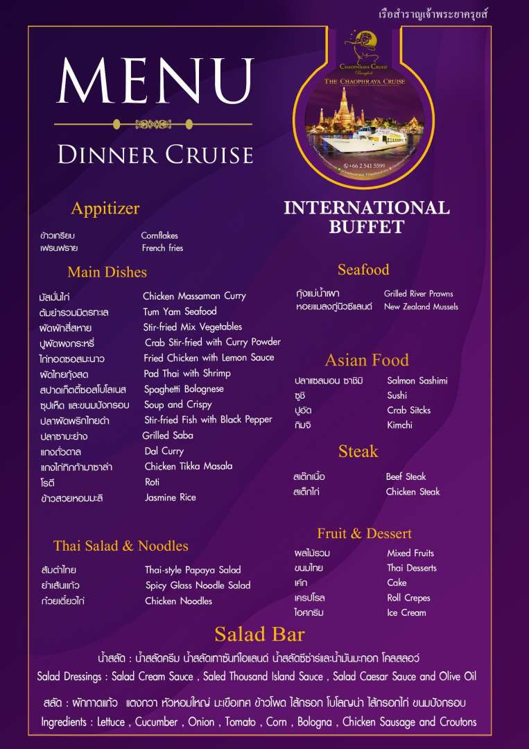 รายการอาหารบนเรือเจ้าพระยาครุยส์ (Menu)