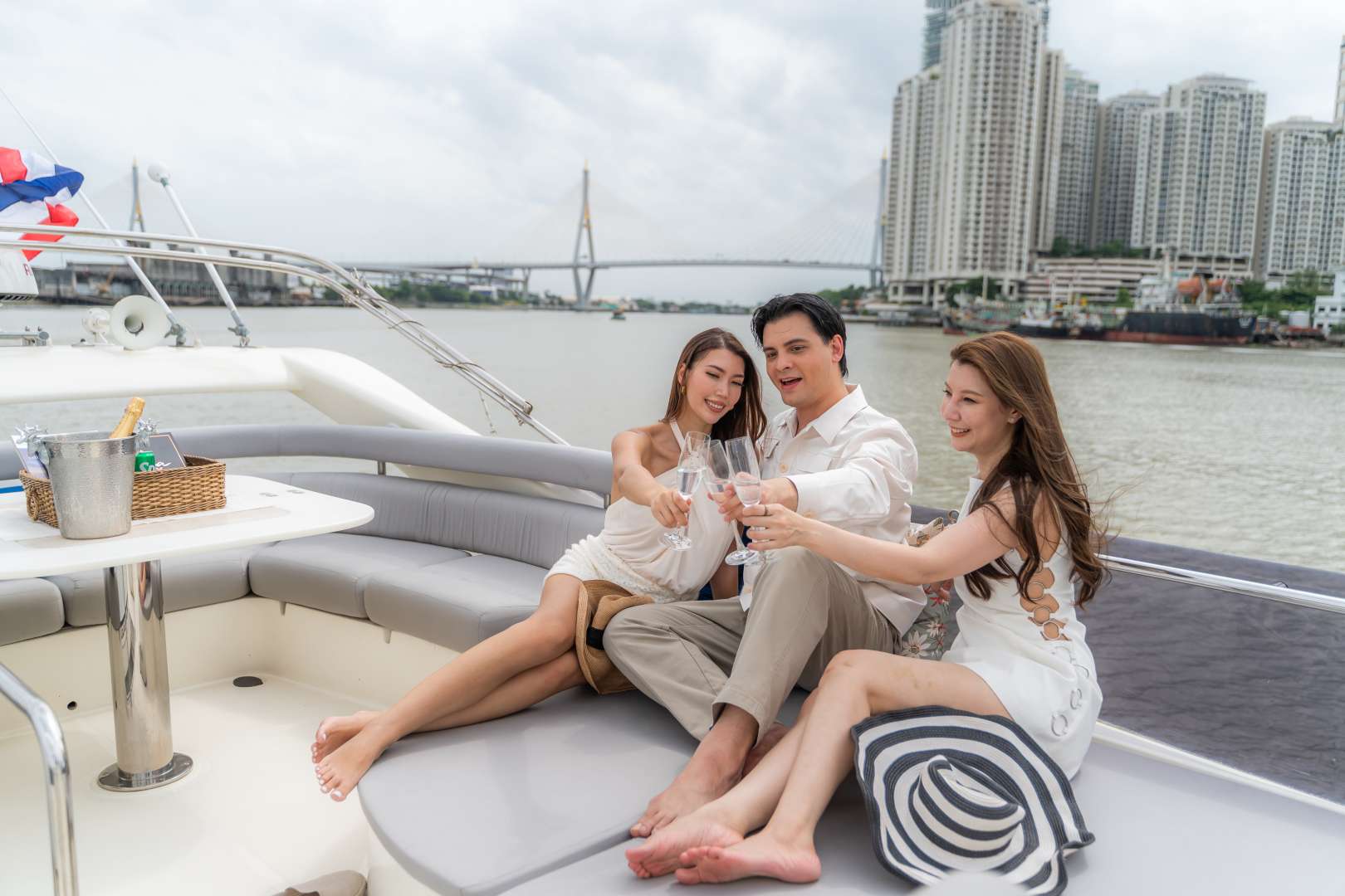 This price includes : Captain, Crew, Hostess, Fuel, Welcome Drink at the Club Lounge (coffee or non-coffee), ice, 1 Welcome Set (choice of Italian set, sushi or cold cut platter), 1 bottle of House Wine, drinking water, snacks and soft drinks, life jackets, and travel insurance.