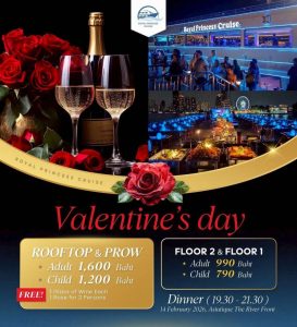 *This service fee cannot be applied during various festivals which the boat holds special events, such as, Valentine’s Day, Mother’s Day, Loi Krathong Day, New Year’s Day, etc.