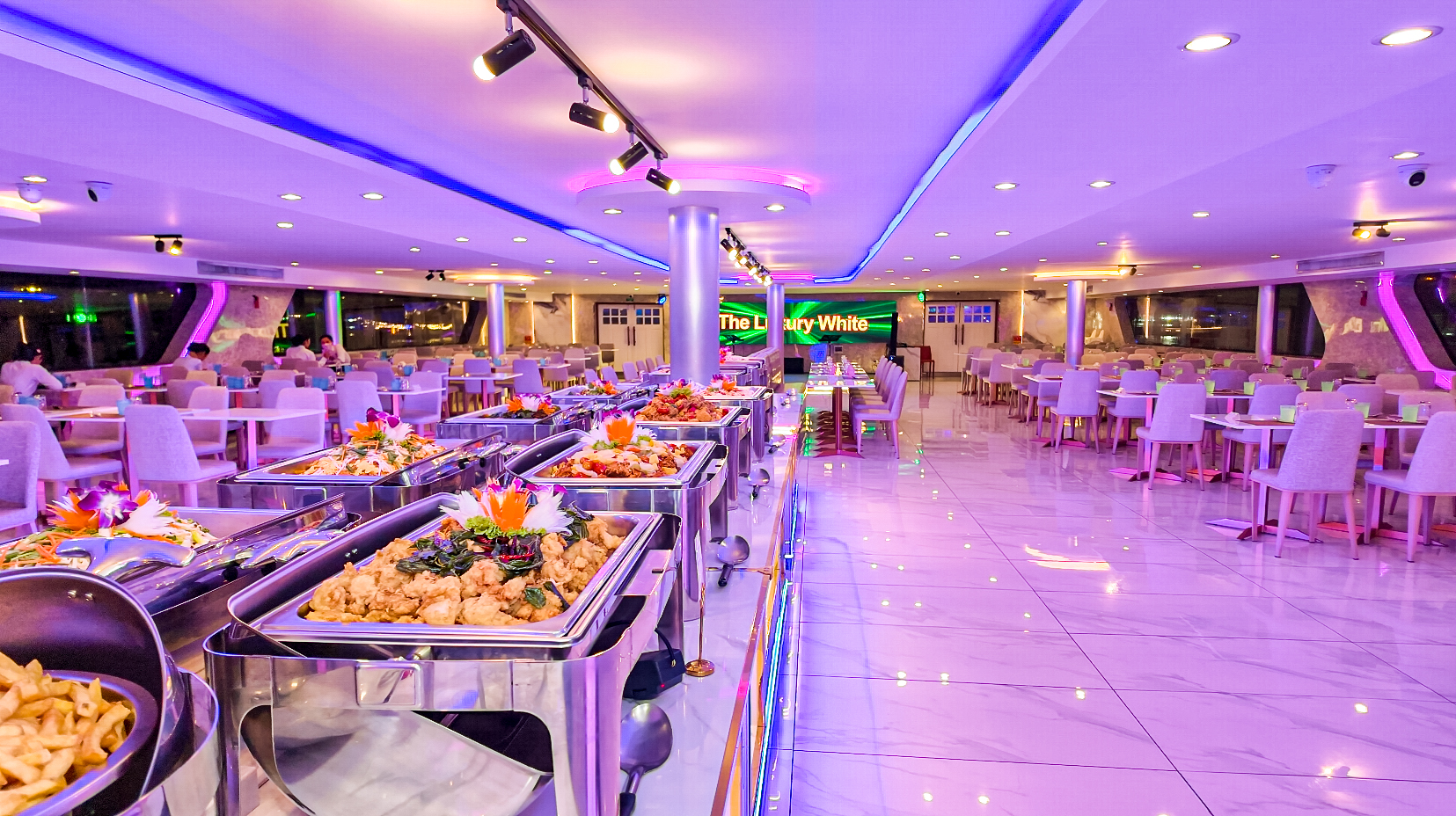 เรือเดอะ ลักซ์ชัวรี่ ไวท์(The Luxury White Golden Twilight) ความจุผู้โดยสารประมาณ 1,000 ท่าน จำนวนลูกค้าขั้นต่ำ 200 ท่าน