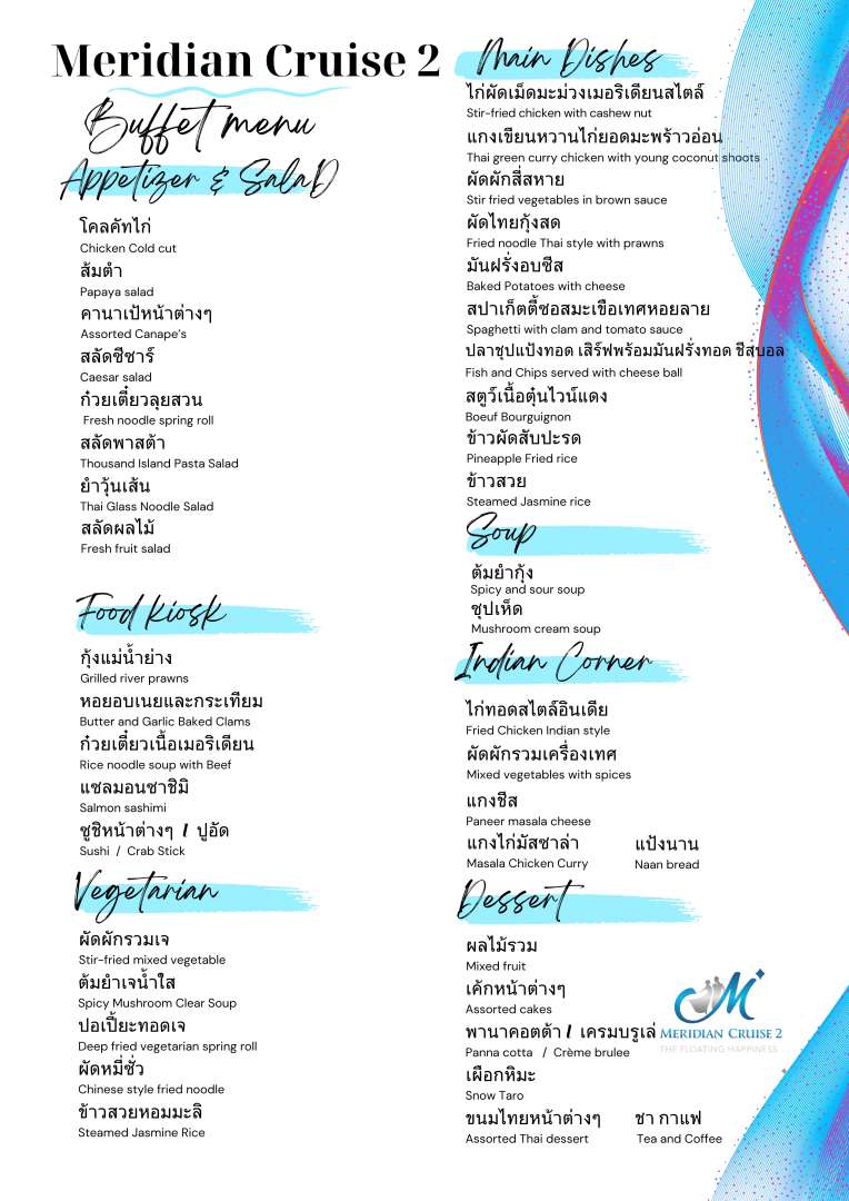 รายการอาหารบนเรือเมอริเดียน ครูซ (Menu)
