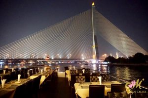 Immerse yourself in the luxurious atmosphere of the Meridian Cruise. Spectacular with the night lights in the Chao Phraya River. Experience a wide variety of international dishes that are deliberately created with the finest ingredients. Admire a proud performance of Thai arts and culture, and listen to beautiful songs. In addition, five-star hotel quality service will make your romantic night filled with happiness with that special someone by your side.