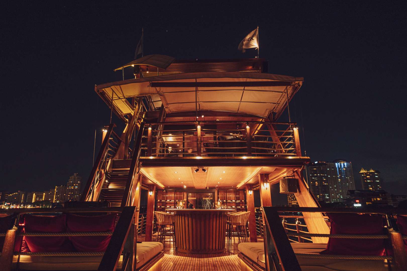 Pruek Cruise is the only luxury, 3-story, teak wood yacht in the Chaophraya river. This 27-meter long, 8-meter high, yacht can accommodate up to 60 passengers. The boat proudly provides 6-star service from professional staffs. Pruek Cruise is also the only one in the river that provides a fine dining experience from Michelin-Star Chefs ‘s Thai & European menu.