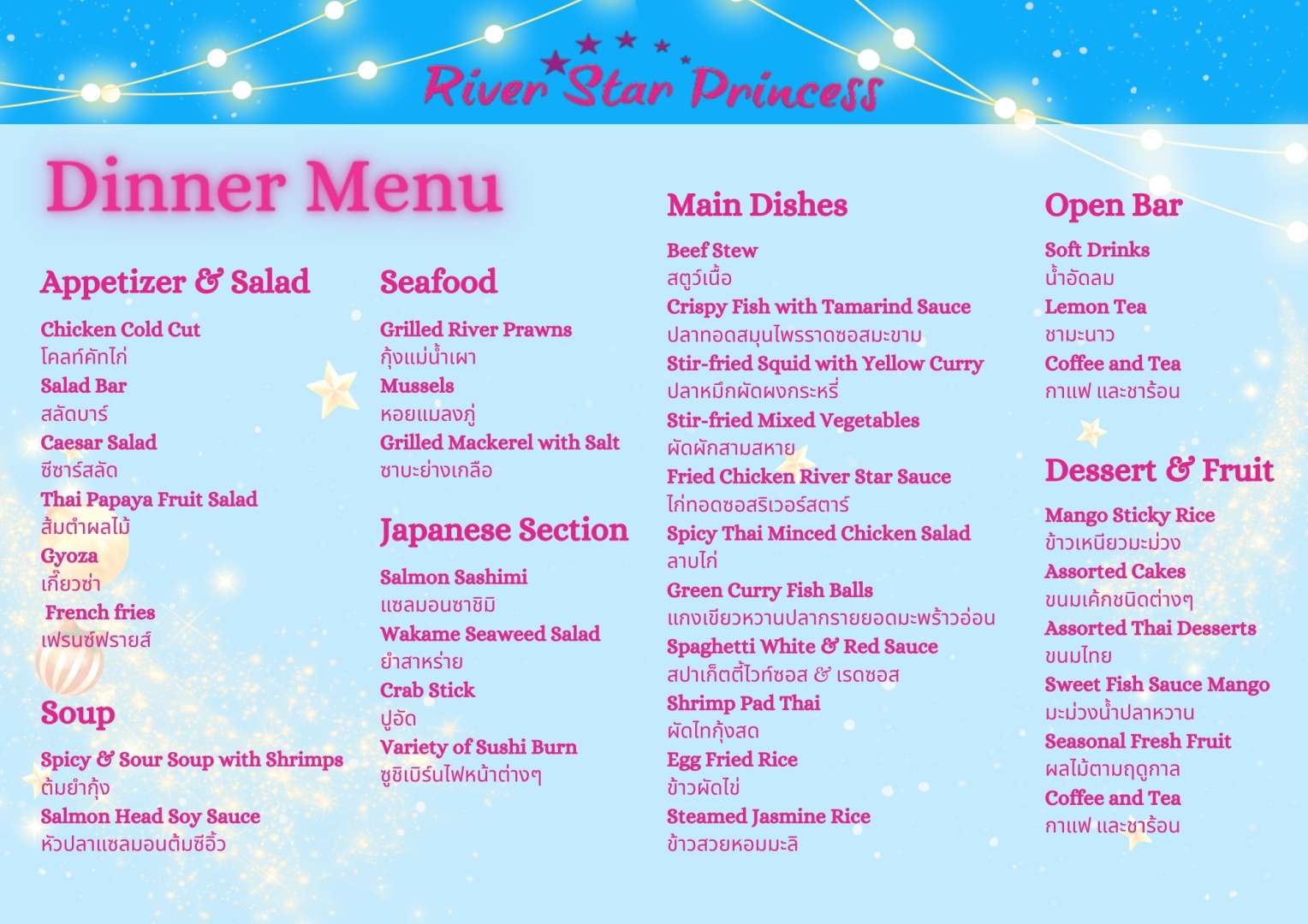 รายการอาหารบนเรือริเวอร์สตาร์ปริ๊นเซส MENU