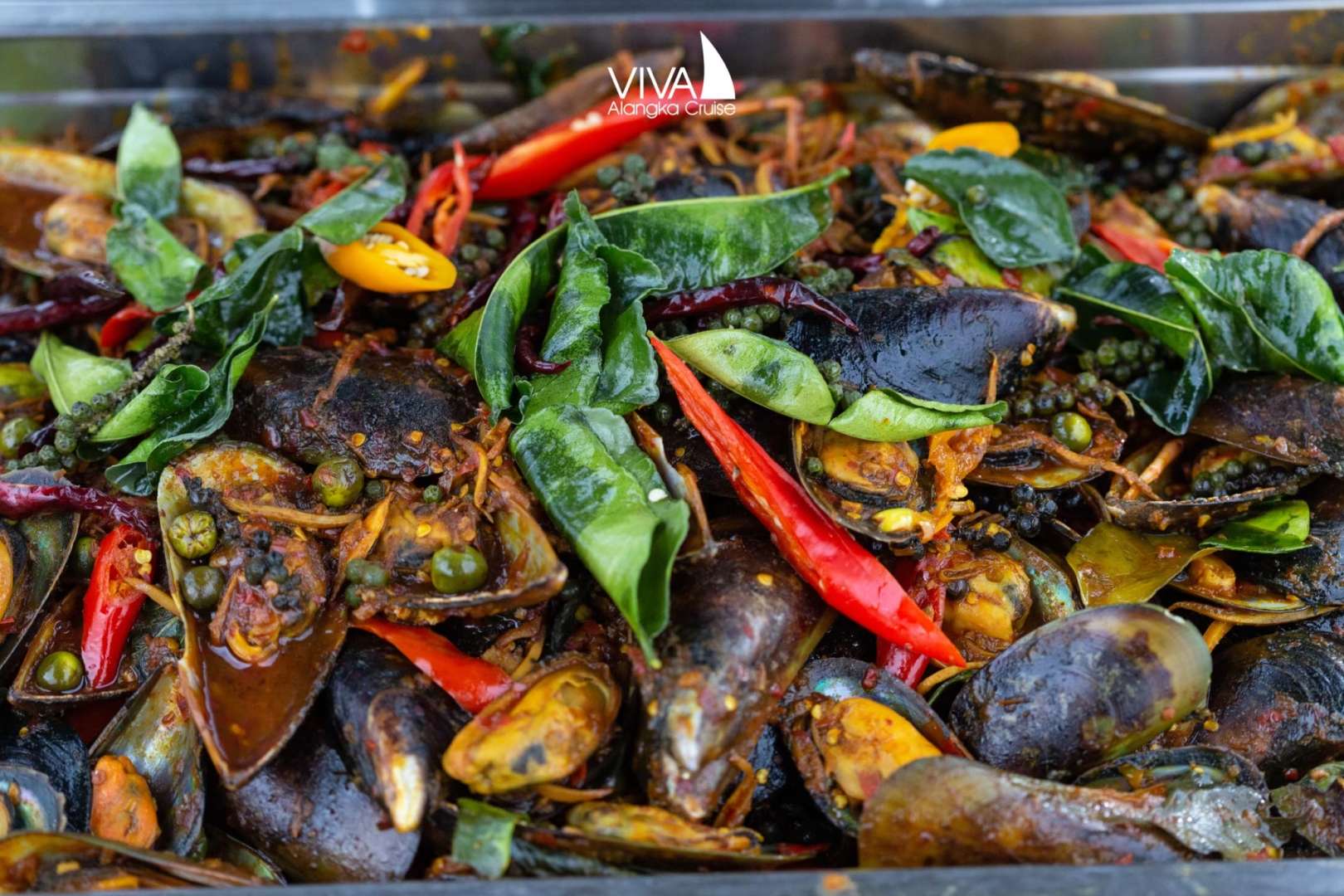 ต้อนรับอย่างอบอุ่น ณ เอเชียทีค เดอะ ริเวอร์ฟรอนท์ ท่าเทียบเรือที่ 1 เรือออกเดินทางจากท่าเรือ พร้อมบริการเครื่องดื่มต้อนรับถึงเวลาดินเนอร์ครูซใต้แสงเทียน พร้อมดนตรีสดจากนักร้องมืออาชีพ และการแสดงนาฏศิลป์ไทย ในบรรยากาศโรแมนติก พร้อมอาหารหลากหลาย ทั้งอาหารทะเล และบุฟเฟต์นานาชาติVIVA Alangka Cruise จะพาคุณผ่านไฮไลท์และสถานที่ท่องเที่ยวริมแม่น้ำเจ้าพระยา เช่น IconSiam, วัดอรุณ, วัดอรุณราชวราราม, พระบรมมหาราชวัง, สะพานพระราม 9 |