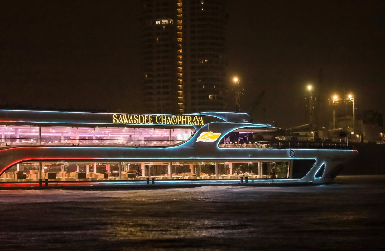 เชิญสัมผัสประสบการณ์การล่องเรือสำราญสวัสดีเจ้าพระยา ดื่มด่ำกับบรรยากาศสองฝั่งของแม่น้ำเจ้าพระยาอันแสนโรแมนติก ชมวิวแม่น้ำเจ้าพระยา 360 องศา ผ่านชมสถานที่สำคัญมากมาย อาทิ เช่น วัดกัลยาณมิตร ป้อมวิชัยประสิทธิ์ วัดอรุณราชวราราม พระบรมมหาราชวัง สะพานพระรามแปด เป็นต้น อิ่มอร่อยอาหารค่ำแบบบุฟเฟ่ห์ไทย-นานาชาติ หลากหลายเมนู, ซีฟู๊ด กุ้งแม่น้ำ หอยชิลี หอยเชลล์ ปลาแซลมอน พร้อมเพลิดเพลินไปกับการแสดงรำไทย การแสดงโขน ดนตรี และนักร้องคอยขับกล่อมท่าน ที่จะทำให้เป็นคืนพิเศษของคุณ และคนที่คุณรักซาบซึ้งใจมิรู้ลืม