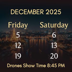Boarding at Asiatique Pier, Pier 2Yod Siam Cruise is ready to welcome you to the “Wichit Chao Phraya 2025” event.Experience a magical evening on the beautiful Chao Phraya River as you cruise and take in the stunning panoramic night views along both sides of the river.Enjoy spectacular lights, electrifying EDM music, free-flow beer, and a fully loaded buffet throughout the 2-hour cruise!Don’t miss it!!! 🎆 Drone Show at 8:45 PM. |