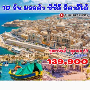 *สงกรานต์* ทัวร์ มอลต้า + อิตาลี (Malta + Italy): มอลต้า ซิซิลี อิตาลีใต้ 10 วัน บินกับ Turkish Airlines (TK) Code: #IH14-MLT+ITA-08Oct2026-A260117 139,900 - 144,900 บาท ช่วงเวลาเดินทาง: มี.ค.- ต.ค. 2569 PDF รายละเอียด 2026-01-17