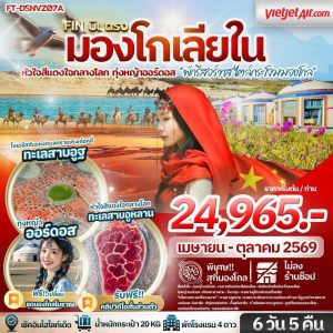 *สงกรานต์**บินตรง* ทัวร์จีน (CHINA) ซีหนิง เส้นทางสายไหม 8 วัน 7 คีน *ทัวร์ไม่ลงร้าน* บินกับ Thai Vietjet Air (VZ) Code: # Code:IF08-CHN-(FT-XNNVZ08A)-19OCT2026-H260225 28,965 - 37,965 บาท ช่วงเวลาเดินทาง: เม.ย. – ต.ค. 69 PDF รายละเอียด 2026-02-25