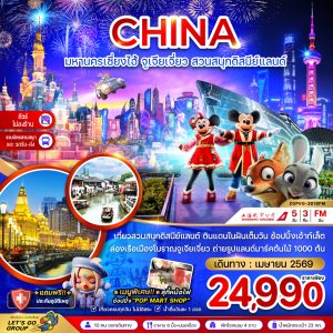 *สงกรานต์**บินตรง* ทัวร์จีน (China) มหานครเซี่ยงไฮ้ จูเจียเจี่ยว สวนสนุกดิสนีย์แลนด์ 5 วัน 3 คืน บินกับ Shanghai Airlines (FM) Code: #Code: IZ02-CHN-(ZGPVG-2618FM)-18APR2026-G260226 24,990 บาท ช่วงเวลาเดินทาง: เม.ย. 69 PDF รายละเอียด 2026-02-26